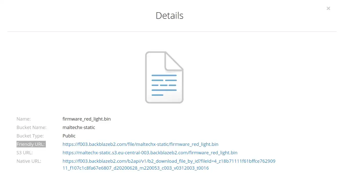 Jetzt lade am besten deine Webseitendaten hoch. Dies kannst du entweder über das Webinterface oder das Command-Line Tool machen. Anschließend solltest du über das i an einer beliebigen Datei, im Webinterface, die Details erfahren können. Dort bitte die Friendly URL ohne Pfad Anteil z.B. https://f003.backblazeb2.com/file/yourbucket kopieren. Diese benötigst du um die Daten mit dem Clouflare Worker von Backblaze zu laden.